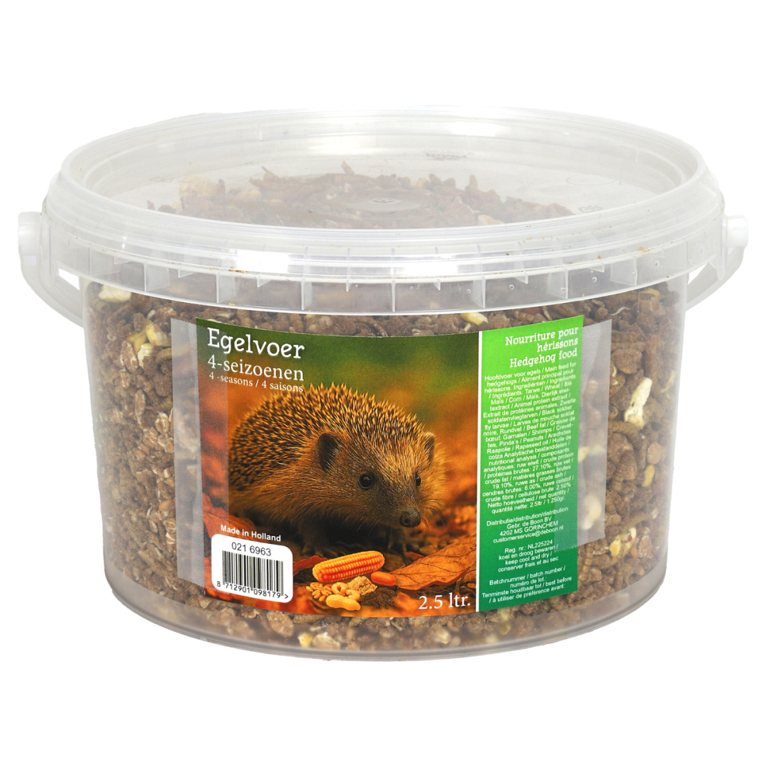 Dit 4-Seizoenen Egelvoer bevat een zorgvuldig samengestelde combinatie van gedroogde insecten, granen, zaden en dierlijke eiwitten, speciaal afgestemd op de voedingsbehoeften van egels. Deze mix levert de juiste energie en voedingsstoffen voor egels die op zoek zijn naar extra voeding, tijdens het broedseizoen of in voorbereiding op hun winterslaap. Geschikt voor het voeren op de grond of in een egelvoederhuisje. Een verantwoorde en smakelijke manier om egels in je tuin te helpen aan extra energie.