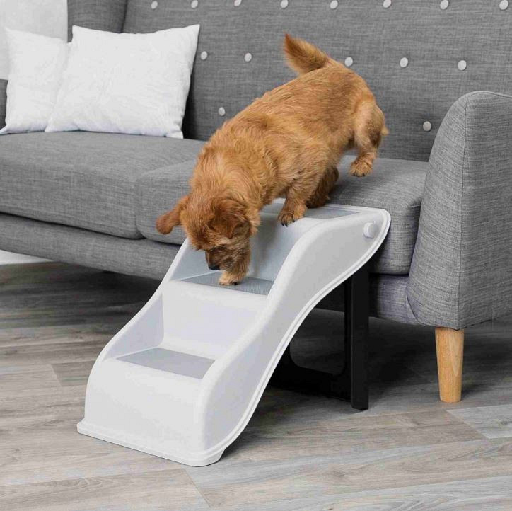 Handige trap voor binnen en buiten die onnodige belasting van de gewrichten van de hond voorkomt. Ruimte besparend op te bergen. Draagvermogen tot 40 kg.
