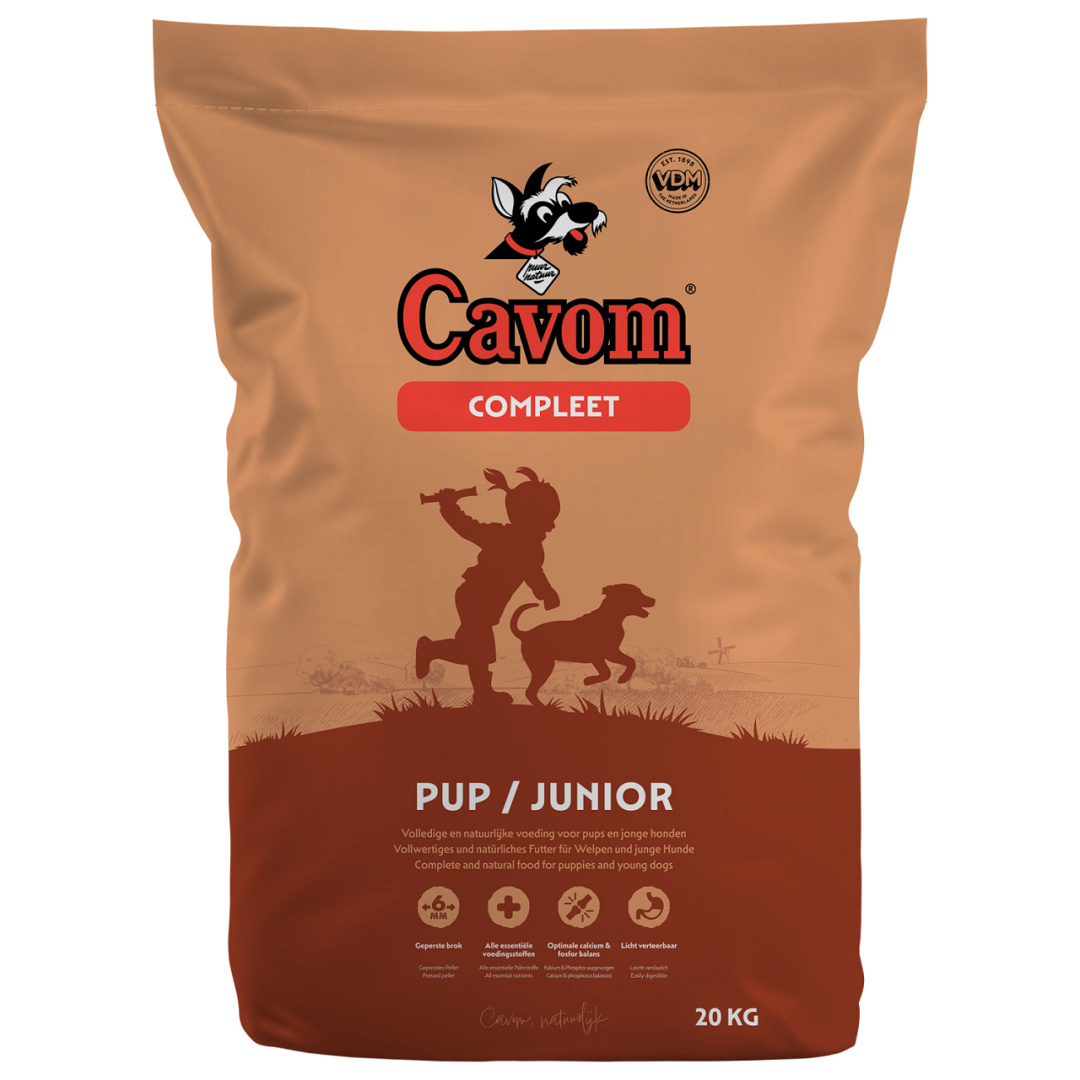 De diverse dierlijke eiwitten met rund en schapenvlees, plantaardige eiwitten, rundvet en olin zorgen voor een hoge calorische waarde. De grondstoffen zijn volledig voor de pups aangepast. Cavom Compleet Pup/Junior kan al op een leeftijd van 4 5 weken bijgevoerd worden. Eerst het voer weken met melk, later met karnemelk of water. Geleidelijk minder vocht toevoegen.