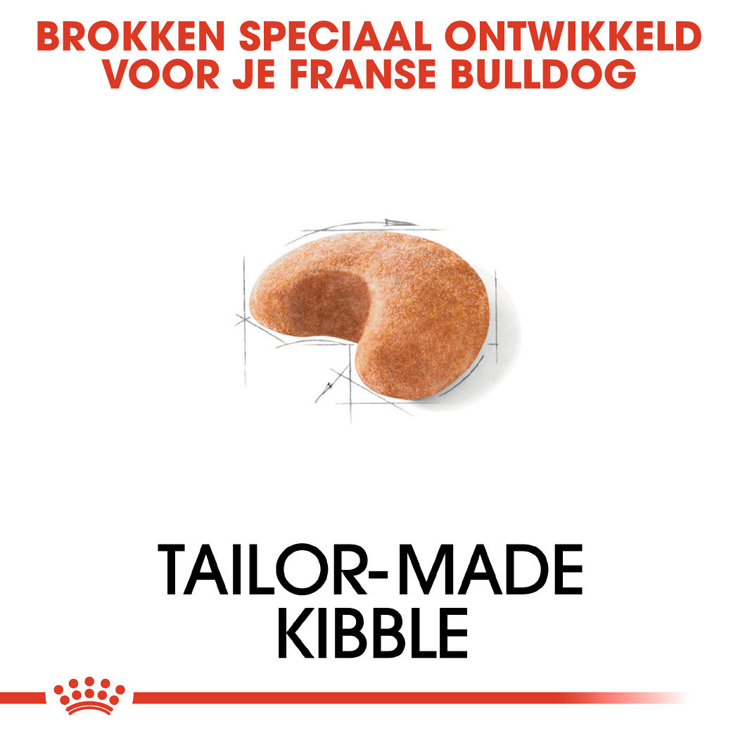 De Franse Bulldog is erg gehecht aan zijn eigenaar en heel loyaal. Zijn legendarische zachte aard en zijn 'joie de vivre' maken hem een ideaal familiehuisdier. Royal Canin French Bulldog Adult draagt bij aan het behoud van de spiermassa. En helpt je lieve Bulldog gezond te houden.