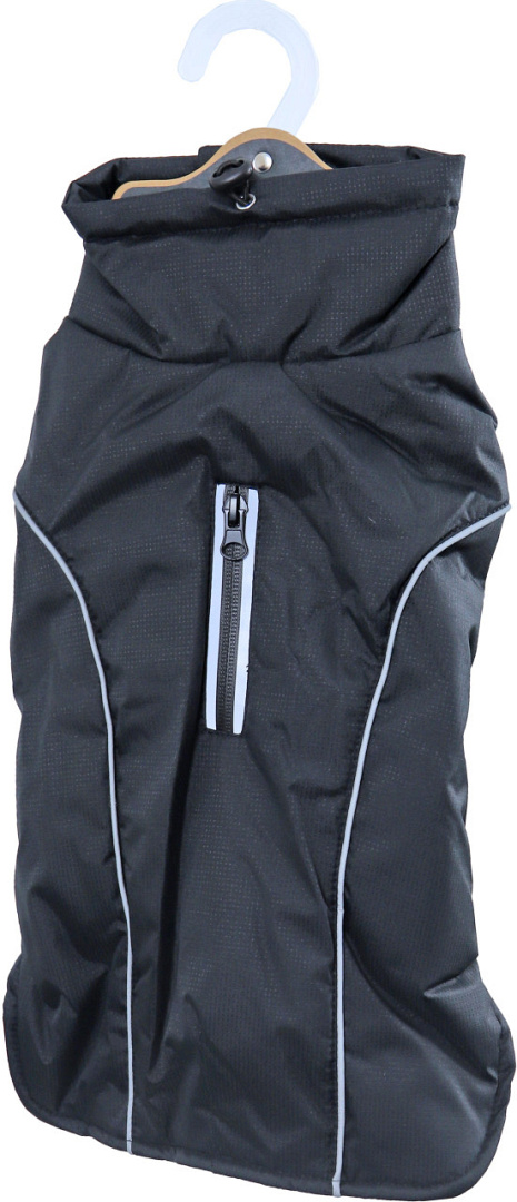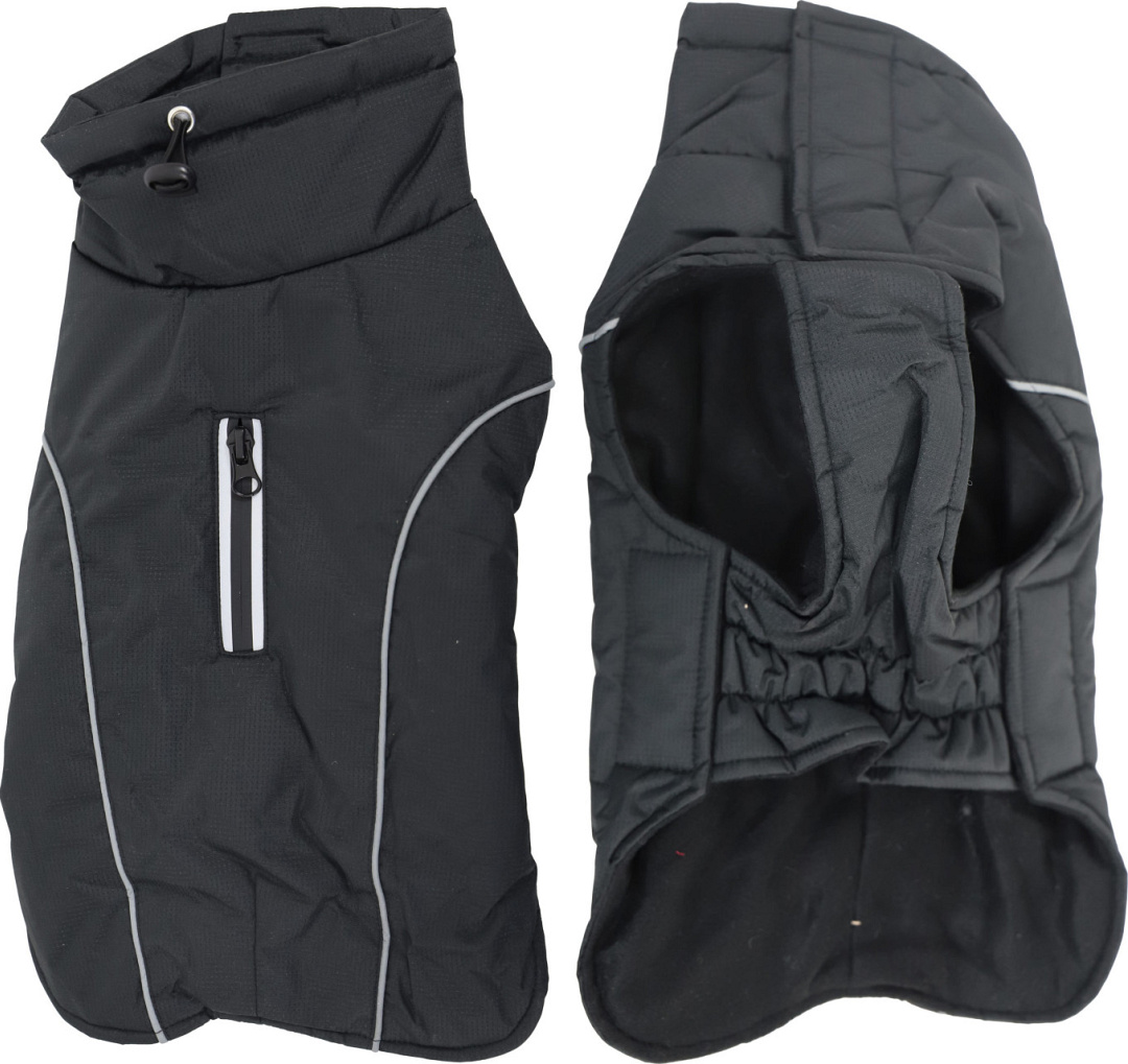Waterproof hondenjas met klittenband sluiting en reflecterende stiksels.