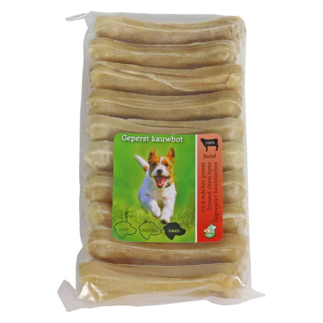 Dit zwaargeperste bot van buffelhuid is van de beste Thaise kwaliteit en is 100% natuurlijk. Dankzij de vorm aan de twee uiteindes van het bot is het uitermate geschikt voor het gebit en tandvlees.