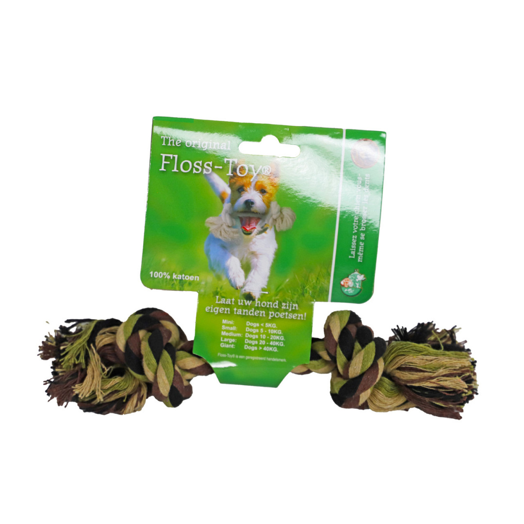 Floss-speeltje van 100% katoenen touw. Reinigt spelenderwijs het gebit van jouw hond.