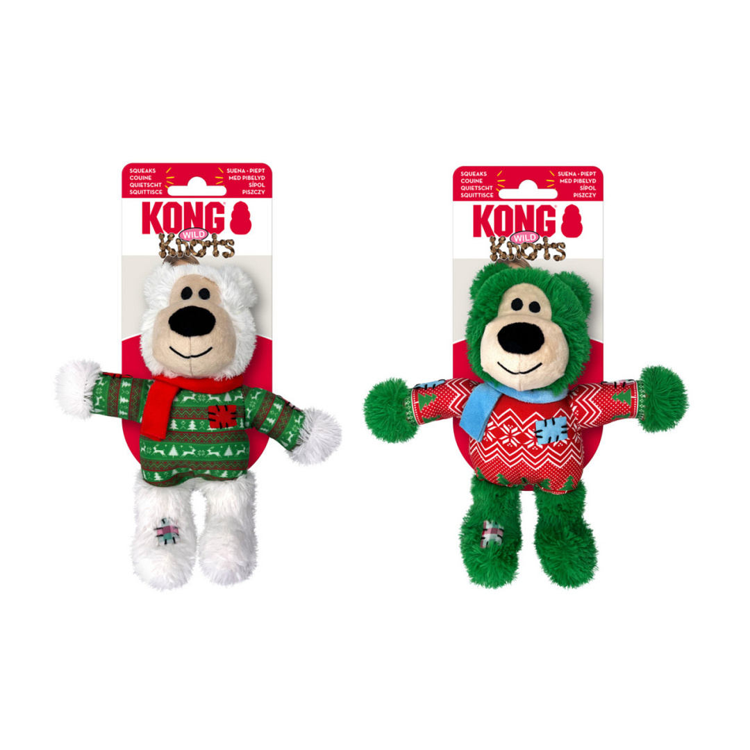 Duik in de feestelijke vreugde met de KONG Kerst Wild Knots Bear, het ultieme hondenspeeltje voor jouw harige vriend de kerstperiode! Met een pluizige buitenkant en een stevige binnenkant dankzij een geknoopt touwskelet, gaat deze beer veel langer mee dan alleen de feestdagen. Gekleed in een charmante seizoensgebonden trui en sjaal, is deze beer perfect voor knusse winterknuffels en indoor speelsessies. En met zijn duurzame constructie is hij klaar voor het ruige werk. Het kauwen en trekken aan deze schattige vriend voldoet aan natuurlijke instincten, terwijl de pieper zorgt voor urenlang plezier. Dus waar wacht je nog op? Voeg een dosis vrolijkheid toe aan het spel van je harige vriend met de KONG Kerst Wild Knots Bear, de perfecte combinatie van zachtheid, duurzaamheid en speelplezier voor deze feestelijke tijd van het jaar!