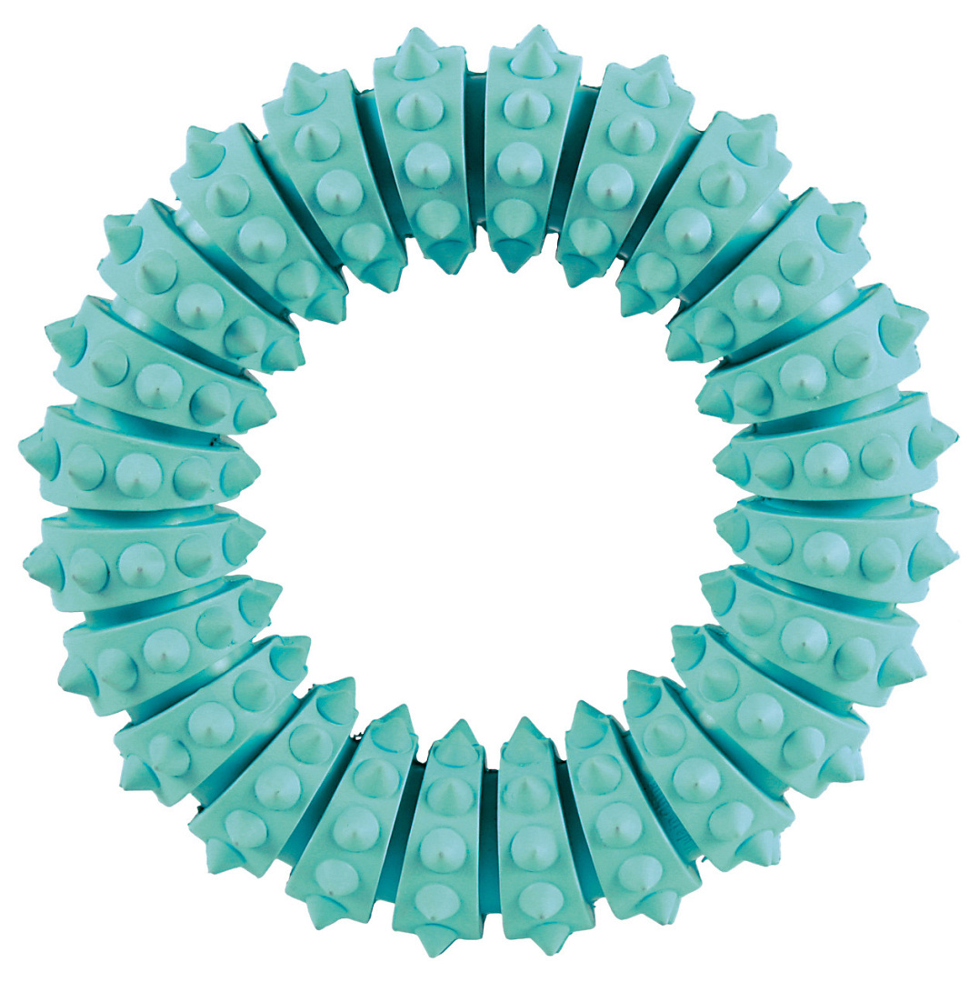 De TRIXIE Denta Fun Ring is gemaakt van natuurrubber en heeft een frisse muntsmaak. Doordat jouw hond op de ring kauwt wordt het tandvlees gemasseerd.