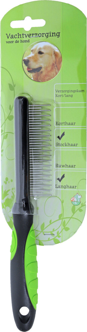 De kam korte/lange tanden verzorgt de vacht van jouw hond door deze los te maken, op deze manier worden losse haren, vuil en eventuele klitten verwijderd. Deze verzorgingskam is geschikt voor alle honden met een onder- en bovenvacht.