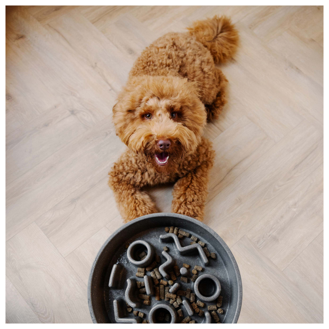 De stijlvolle en praktische District 70 Slow Feeder biedt een manier om jouw hond langzamer te laten eten. Heeft jouw hond zijn maaltijd al op voordat je het weet? En moet hij of zij vervolgens braken? Het schrokken van eten kan gezondheidsnadelen met zich meebrengen, zoals de kans op overgewicht of zelfs een maagtorsie.