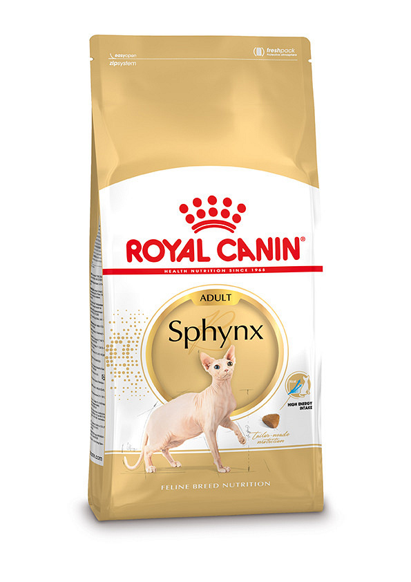Royal Canin Sphynx Adult is een rasspecifieke voeding voor de Sphynx vanaf 1 tot 12 jaar oud.