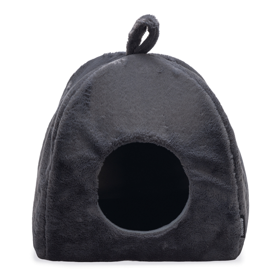 Knus pluchen kattenhuisje met uitneembaar en wasbaar kussentje.