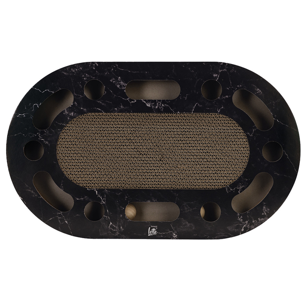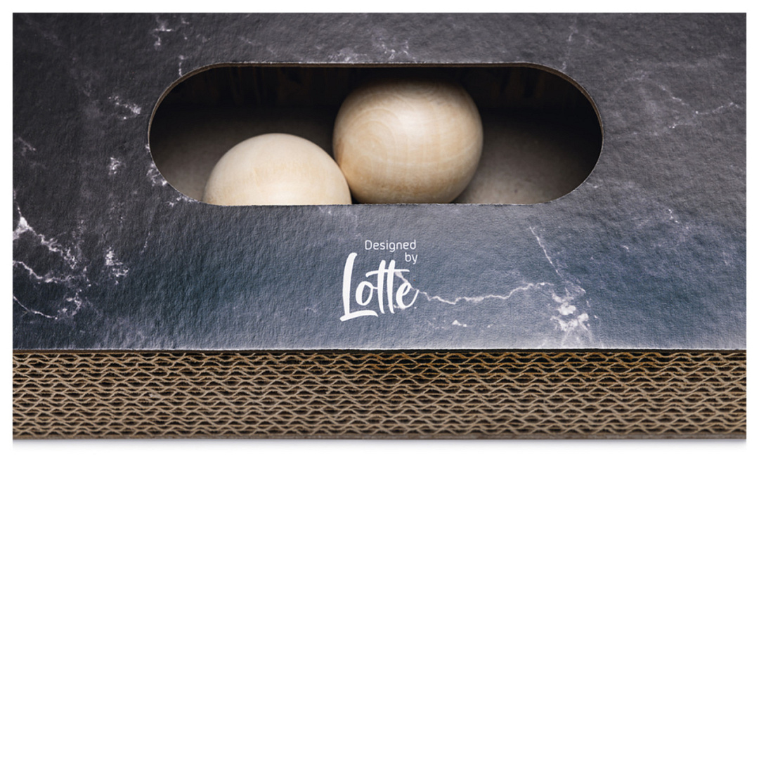 Designed by Lotte krabspeelgoed Meda past perfect bij de laatste interieurtrends. Met zijn elegante kleur en marmerlook is dit krabspeelgoed niet alleen functioneel voor jouw kat, maar ook een stijlvolle toevoeging aan je woonkamer.