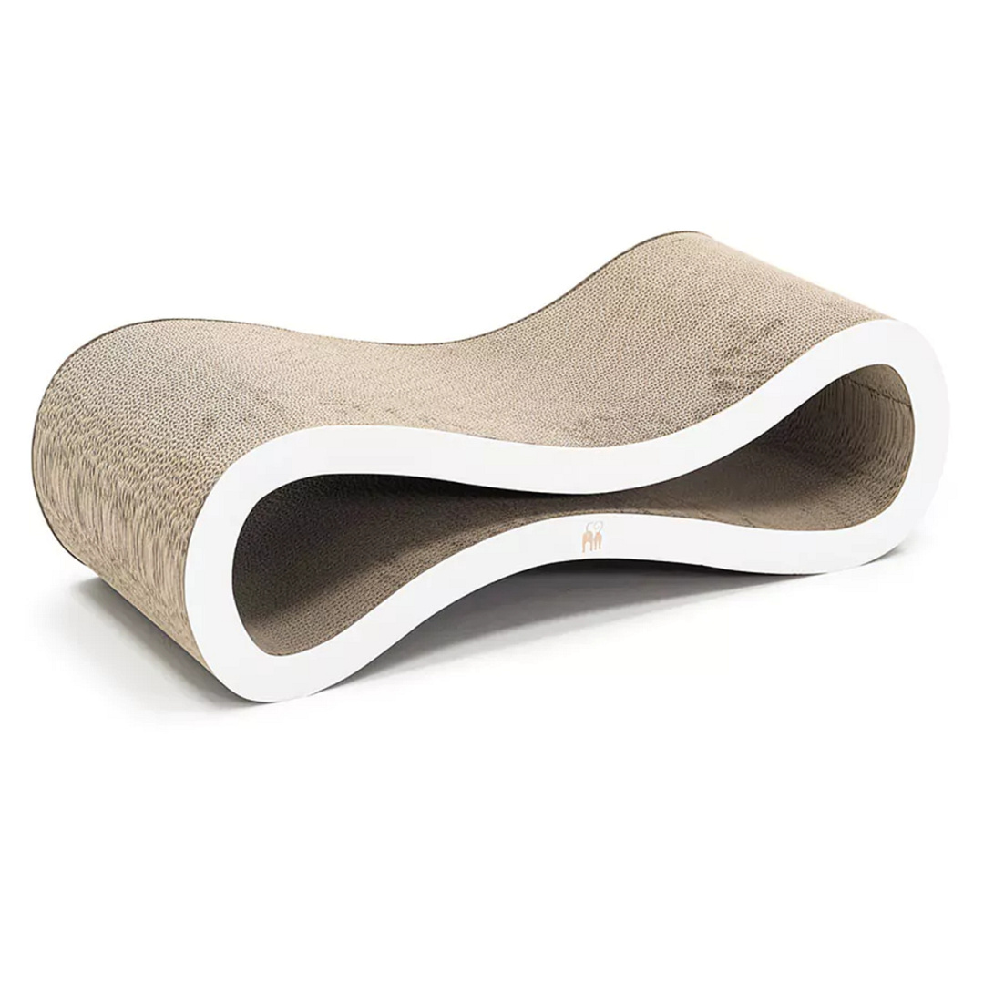 Multifunctioneel krabmeubel van karton in een sierlijk zandlopervorm. Afm. 75 x 32 x 23 cm.