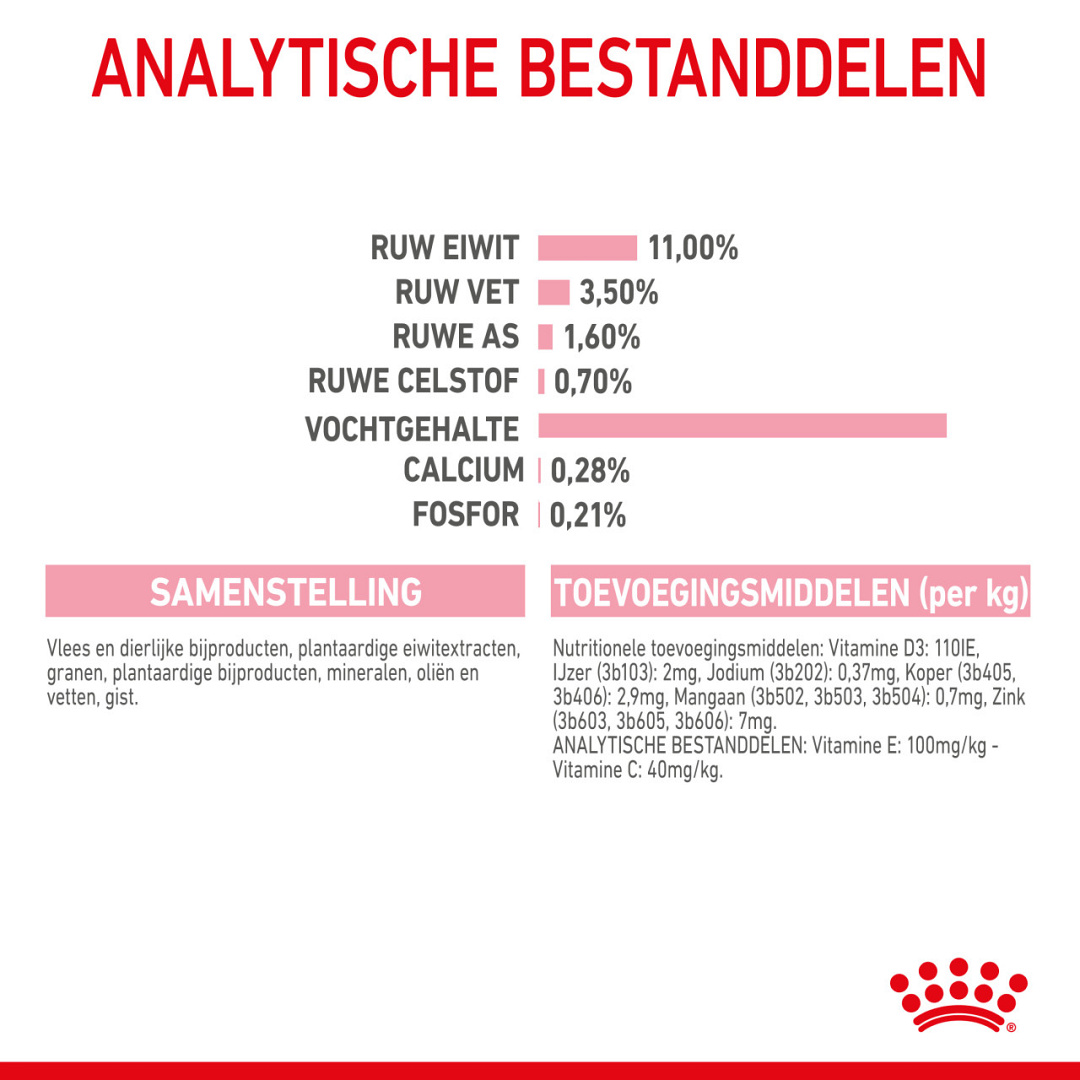 Royal Canin kattenvoer Kitten Sterilised Gravy is een volledige en uitgebalanceerde kattenvoeding voor gesteriliseerde/gecastreerde kittens (van 6 tot 12 maanden). Sterilisatie of castratie veroorzaakt hormoonveranderingen bij je kitten, waardoor het gedrag en de behoeften kunnen veranderen. Je kitten heeft minder calorieën nodig en kan van dezelfde voeding ineens dikker worden. Met een speciale voeding blijft je kitten op een gezond gewicht.