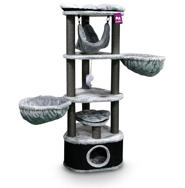 Stabiel krabmeubel met slaapruimte, hangmat en verwijderbaar kussen. Geschikt als hoekmodel. Afm. 60 x 60 x 160 cm.