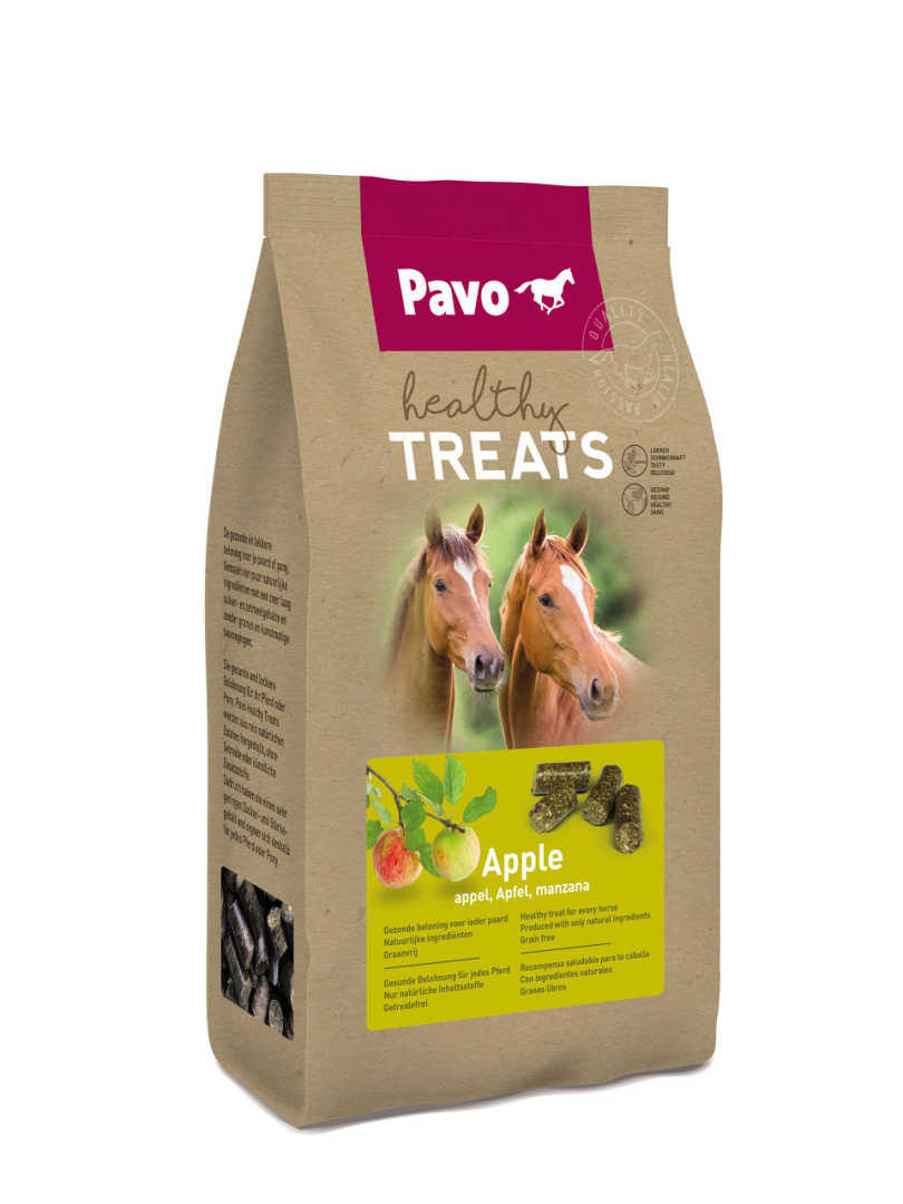 Pavo Healthy Treats zijn gezonde én lekkere snoepjes die je geeft als beloning aan je paard of pony. Een lekker extraatje om je paard te verwennen, bijvoorbeeld na het rijden of juist als tussentijdse beloning bij grondwerk en vrijheidsdressuur.